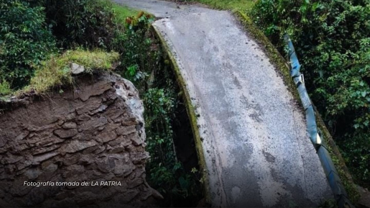 Colapso de puente en zona rural de Pácora deja vía cerrada y alerta por fuga de gas
